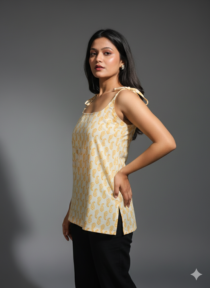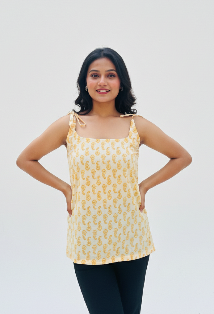 ☀️ Mehek Handblock Cotton Strappy Top – Sunny, Chic & Breezy