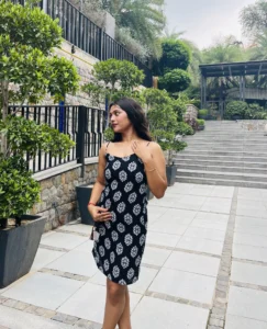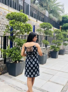 Step into effortless elegance with the Midnight Leaf Back-Tie Cotton Dress, where comfort meets charm in the most beautiful way. Crafted from soft, breathable cotton, this black printed dress isn’t just an outfit – it’s a mood, a memory, a moment you’ll want to relive over and over.